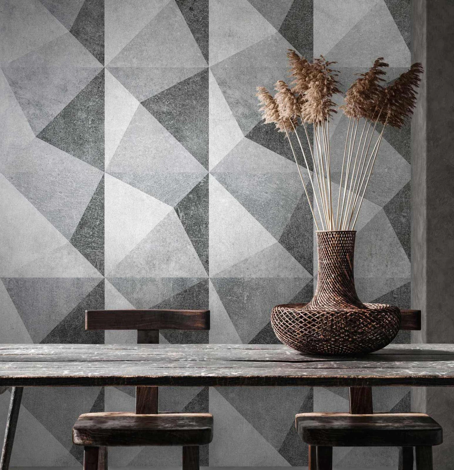 Digitaldruck mit Dreiecken und 3D-Effekt in grau – 38281-1 | 382811