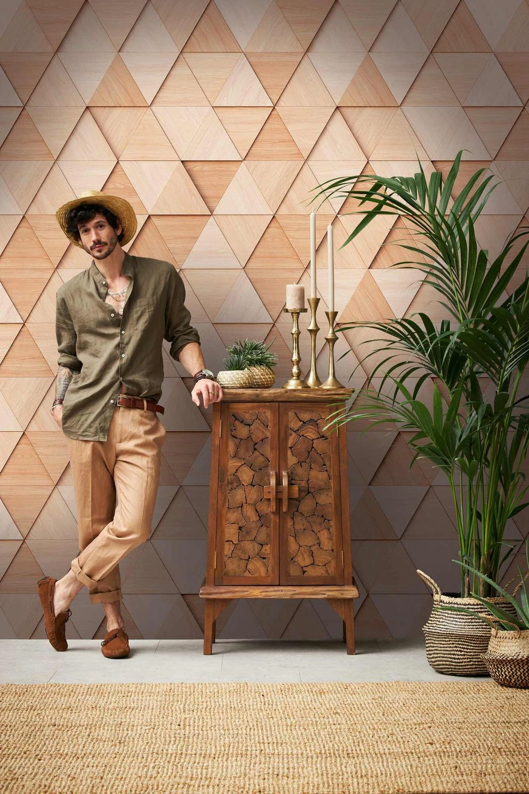 Die Vliestapeten aus der Kollektion “The Wall” ist aus der Serie “Metropolitan Stories” von AS Creation entstanden und wurde von mehreren Künstlern designt. Weltweit holten sie sich Inspiration aus großen Metropolen oder der Natur verschiedener Länder. Die Fototapete 38288-1 mit Holz-Dreiecke mit 3D-Effekt in braun verändert im Nu das gesamte Raumbild und beeindruckt mit ihrer hochqualitativen Auflösung des Digitaldrucks. Tapetenfans werden genauso wie wir begeistert von den schönen Motiven dieser Kollektion sein.