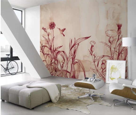 Fototapete Rasch Young Artists Leo La Douce Kolibri Blumenwiese weiß rot 100488