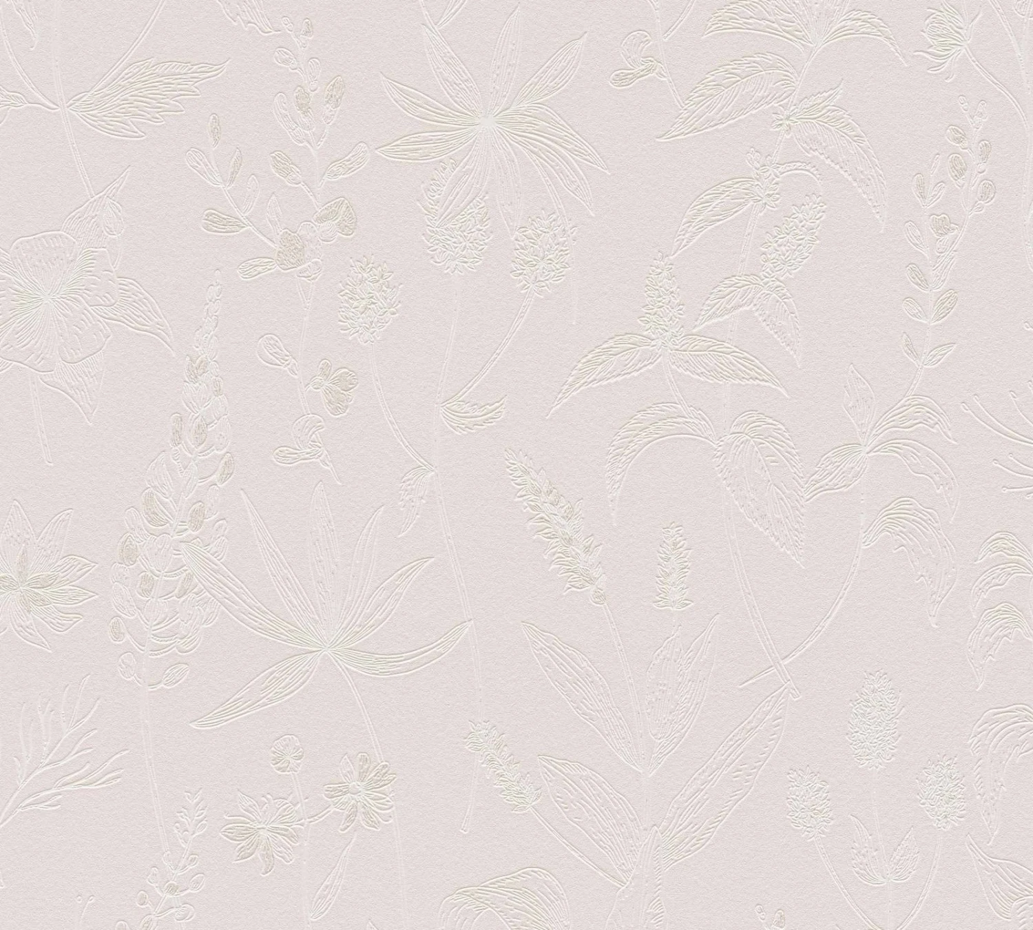 Vliestapete Floral Blätter rosa weiß leichter Glitzer Jette livingwalls 373633 | 37363-3