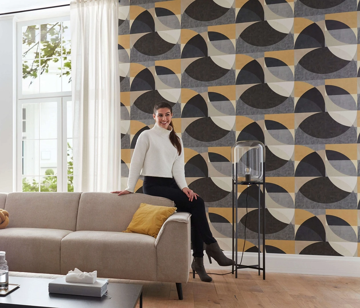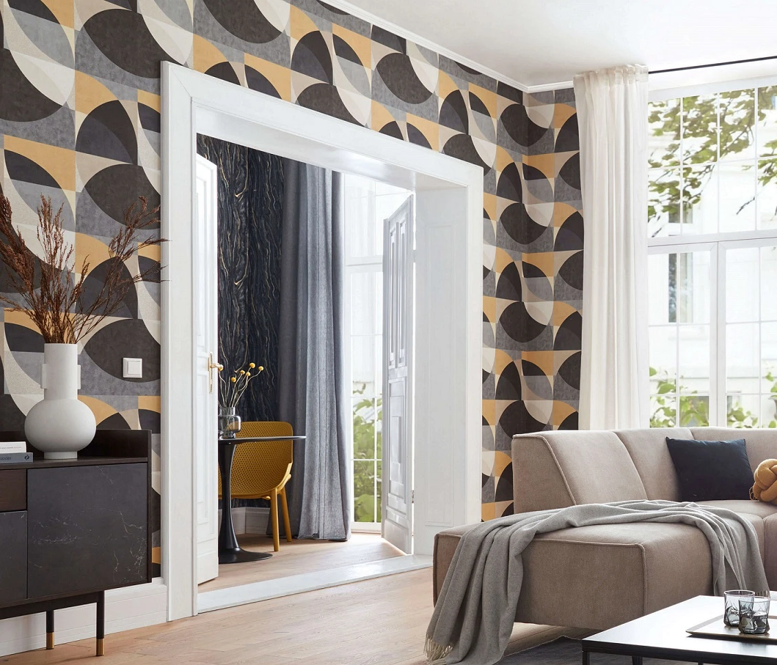 Edel und doch verspielt kommen die Muster aus der Vliestapeten-Kollektion “Elle Decoration” von Erismann daher. Das geometrische Kreis-Design in schwarz, blau, gelb der Tapete 10150-15 wertet im Nu jeden Wohnraum auf und sorgt für einen atemberaubenden Hingucker.