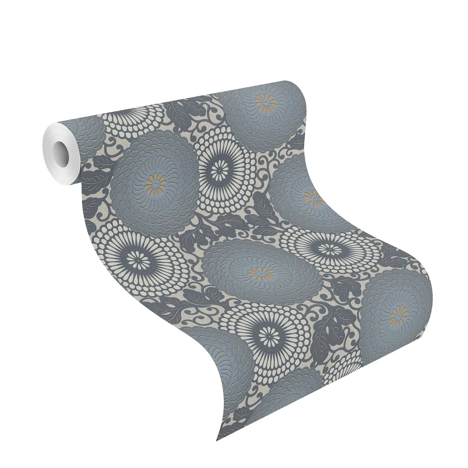Tapete Vlies Ornament Retro blau Glanz Rasch Indian Summer 759051
