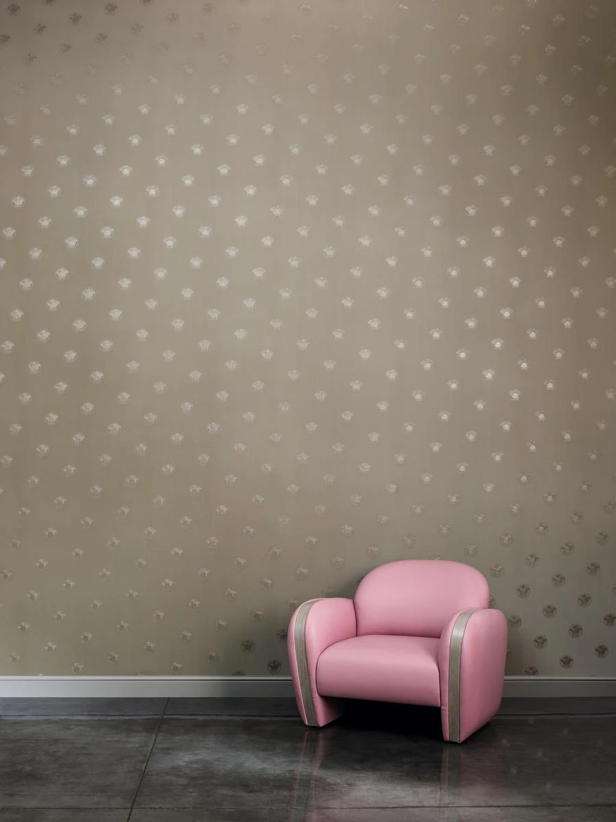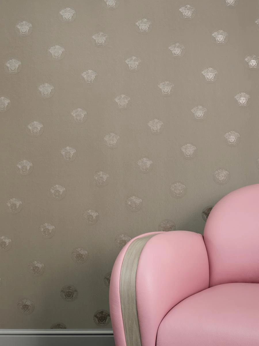 Die Einrichtungsmarke Versace Home steht für exklusives und hochwertiges Interiordesign. Dabei erfindet sich die Designermarke mit ihren glamourösen Kreationen immer wieder neu und setzt damit unangefochtene Maßstäbe im Einrichtungsbereich. Mit der dritten Auflage der erfolgreichen Versace Home Tapetenkollektion setzt die Luxusmarke erneut ausdrucksstarke Akzente im Wohnbereich. Inspiriert von Prunk und Eleganz sowie der griechischen Mythologie verzaubert Sie die Versace Vliestapete 34862-3, aus der Themenreihe Vanitas, mit einem antiken Ambiente. Dieses Ambiente wird durch das kräftige Kolorit aus silber-grau Glanz sowie der aufregenden Präge- und Rillenstruktur stilvoll in Szene gesetzt. Die Kombination aus Farbe und Struktur führt letztendlich dazu, dass die Medusa Kopf Abbildungen zum Hauptaugenmerk Ihrer Wandgestaltung wird.