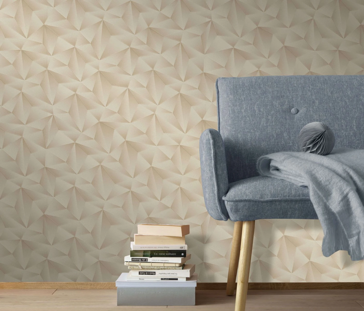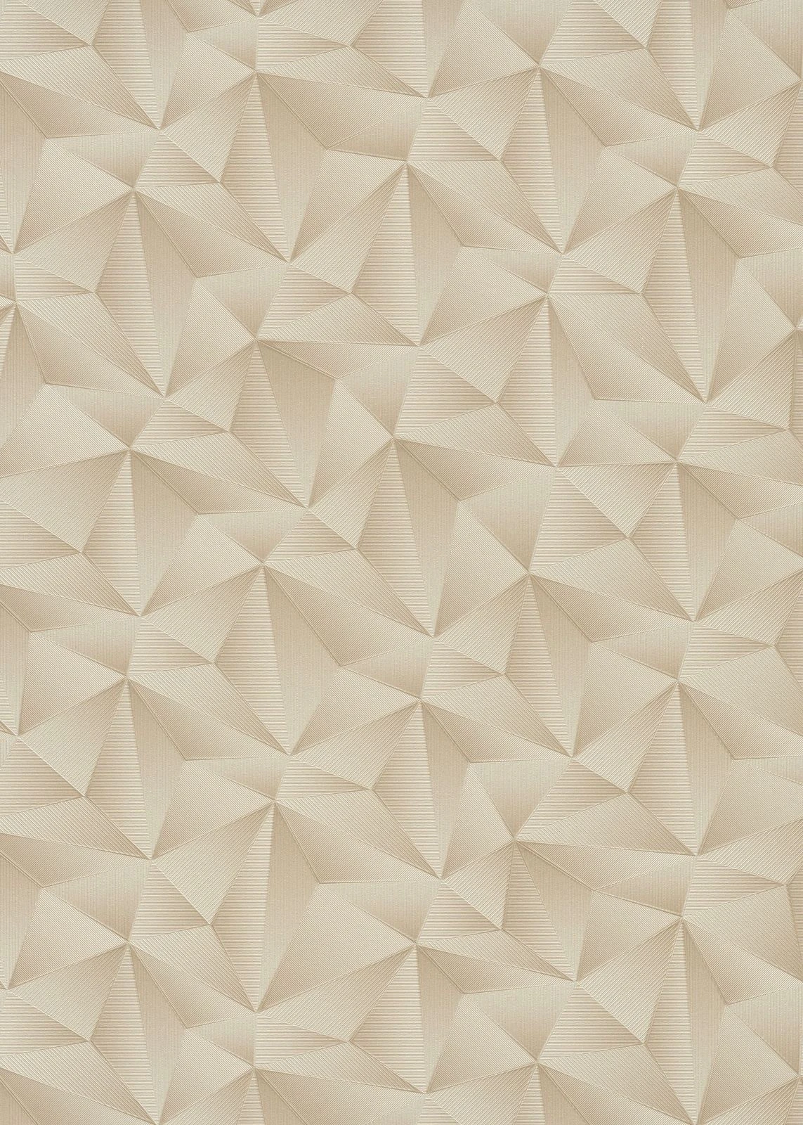 Alles andere als old-fashioned ist die Vliestapetenkollektion von Erismann mit der Serie Spotlight. Expressive Muster, natürliche Blattmotive und klassische Streifen kombiniert mit Metallic-Effekten in zeitlos schicken Farben setzen jeden Raum gekonnt in Szene. Im Mix mit einem farblich abgestimmten Uni entstehen so besonders reizvolle Kontraste. Die Tapete 10106-02 zeigt ein Dreieckmuster mit 3D-Effekt in Beigetönen.