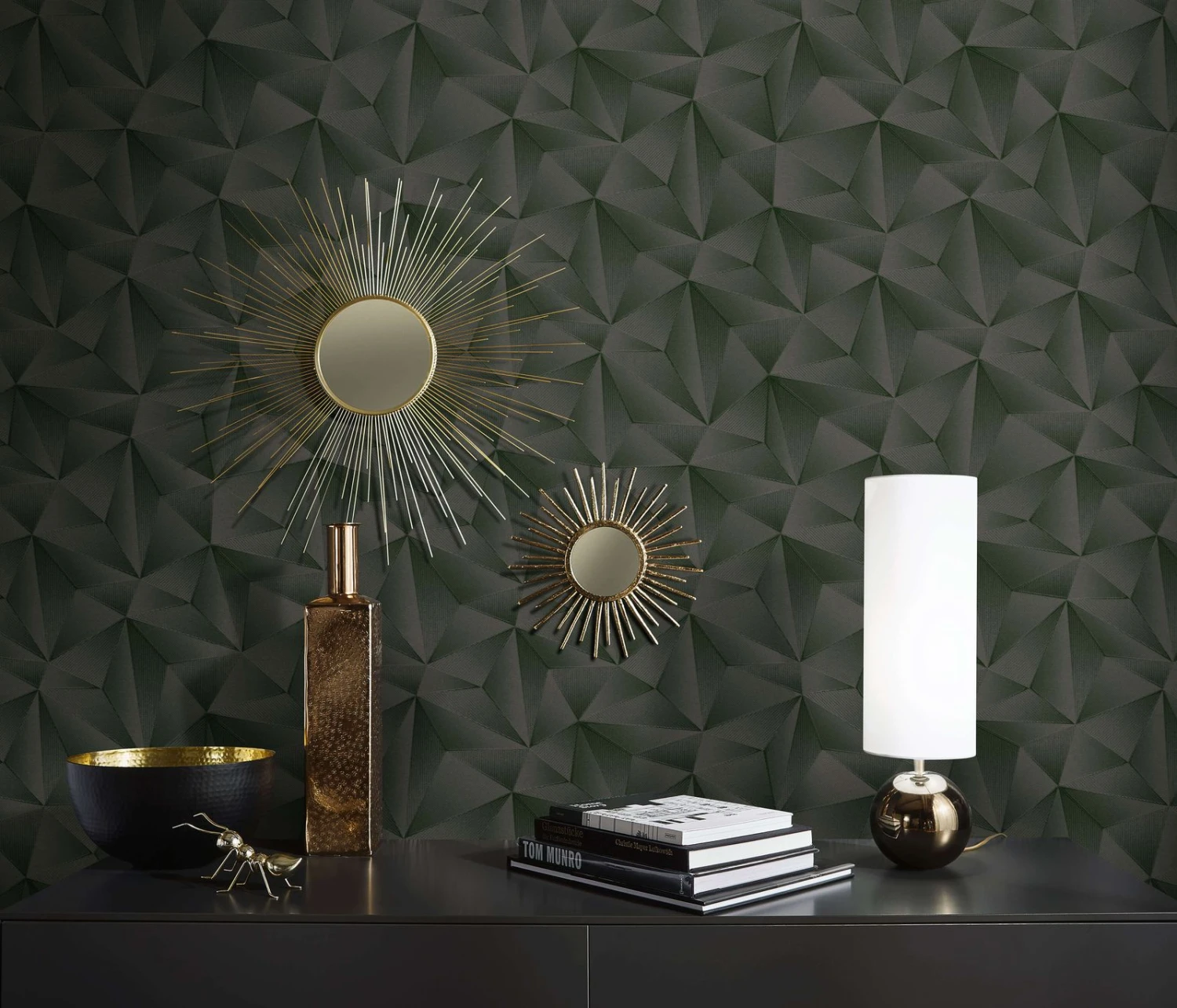 Alles andere als old-fashioned ist die Vliestapetenkollektion von Erismann mit der Serie Spotlight. Expressive Muster, natürliche Blattmotive und klassische Streifen kombiniert mit Metallic-Effekten in zeitlos schicken Farben setzen jeden Raum gekonnt in Szene. Im Mix mit einem farblich abgestimmten Uni entstehen so besonders reizvolle Kontraste. Die Tapete 10106-15 zeigt ein Dreieckmuster mit 3D-Effekt in Grautönen.