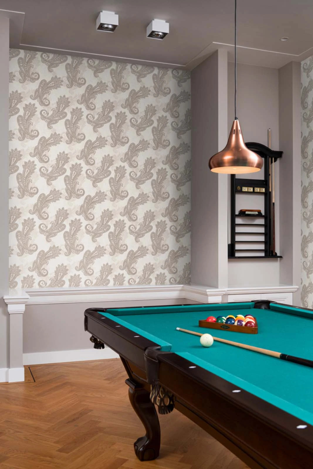 Diese Tapete aus der Kollektion Indian Style von Rasch nimmt dich mit auf eine Reise nach Indien. Inspiriert von prachtvollen Palastgärten und kunstvollen Grafiken bringen dir die Tapeten der Kollektion orientalisches Flair nach Hause. Die Vliestapete 746419 zeigt ein Motiv mit Ornamenten im Paisley-Stil, die an indisches Henna erinnern in weiß mit Metallic-Effekt in Silber. Entdecke auch die weiteren Tapeten dieser Vliestapetenkollektion bei uns im Shop.